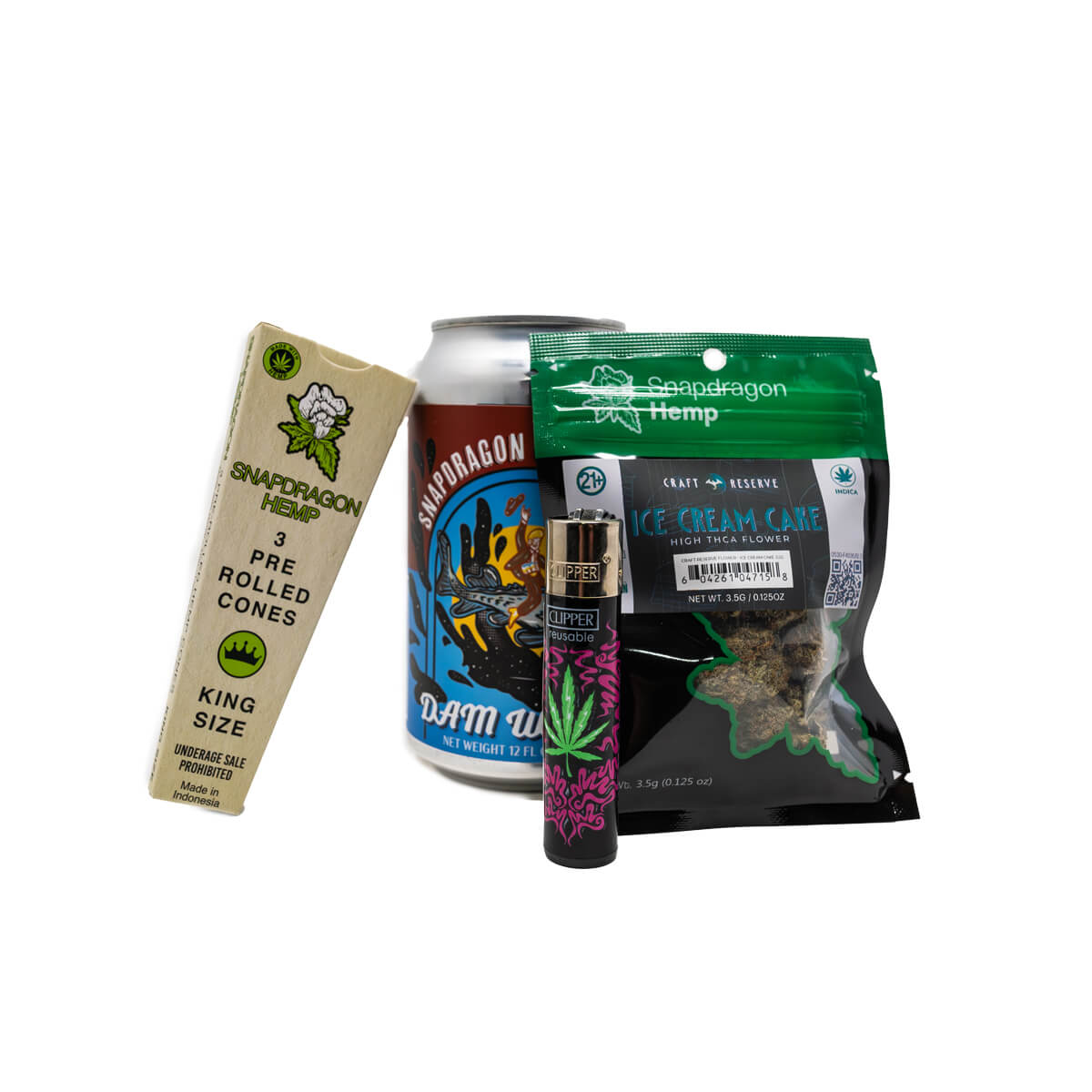 • One 12oz can of Snapdragon Soda (Doobie Blast 25mg D9, or Lemonade Haze 10mg D9) or One 16oz can of Dam Water 50mg D9